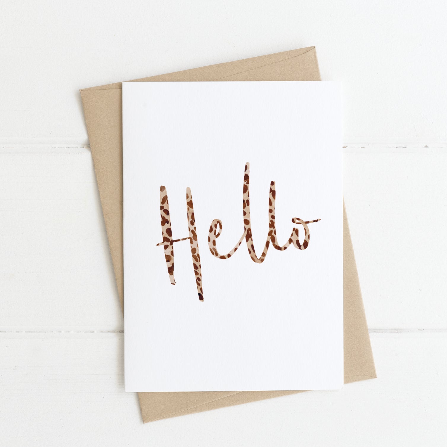 Send a stylish hello with this hand-lettered A6 greeting card, designed with a bold leopard print twist. Each card features my original lettering of the word hello, filled with a chic animal print pattern that makes it stand out from the ordinary.